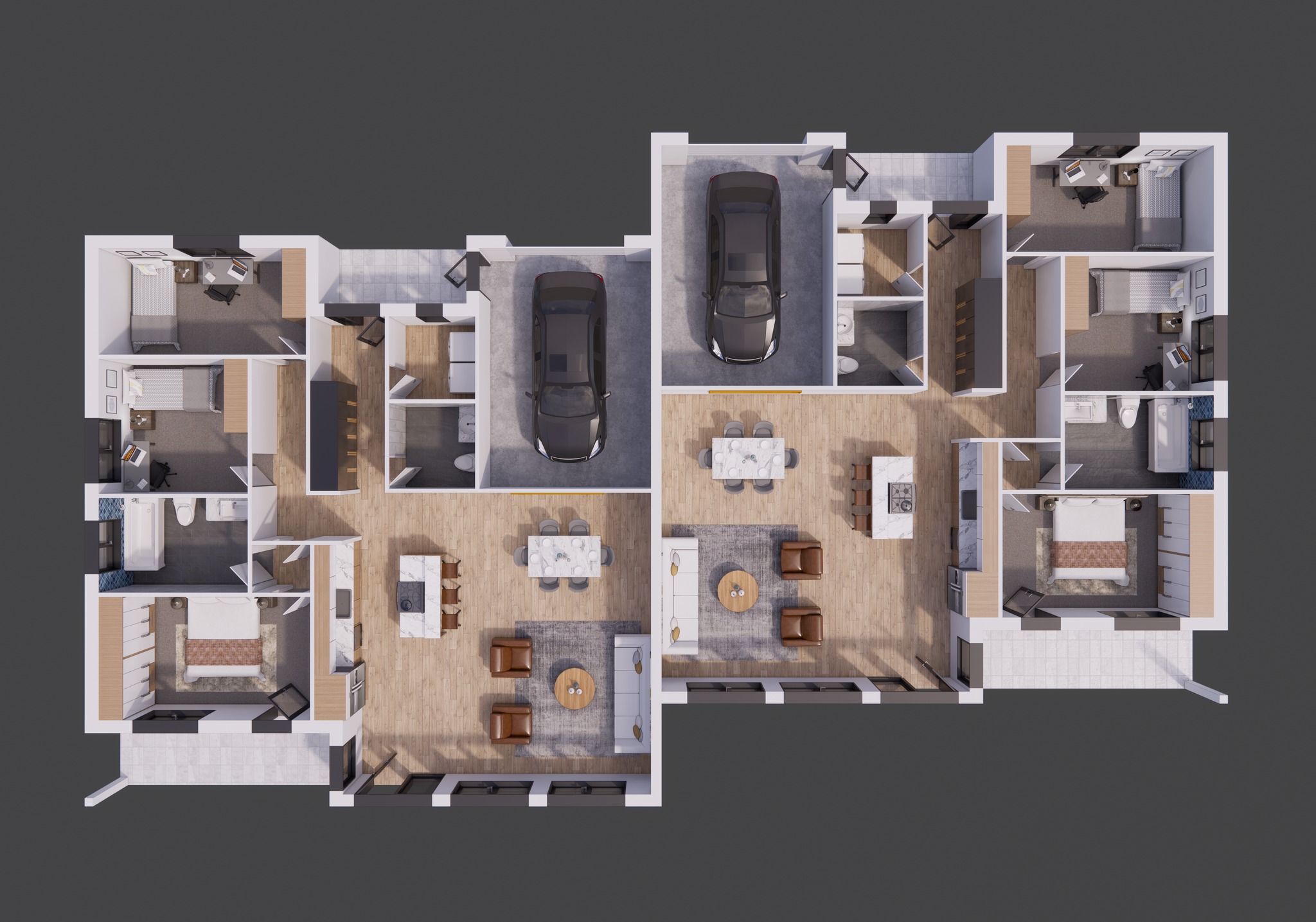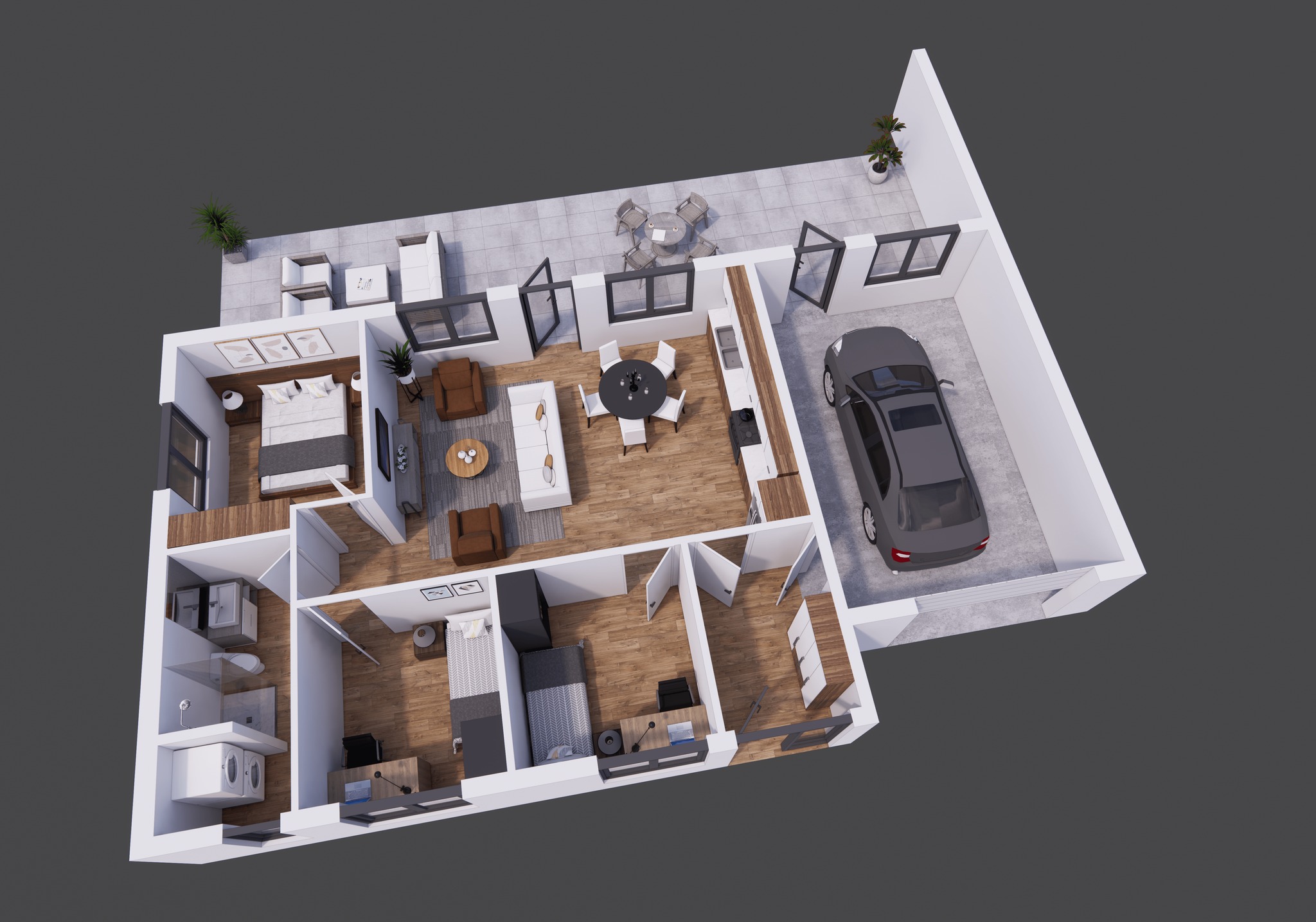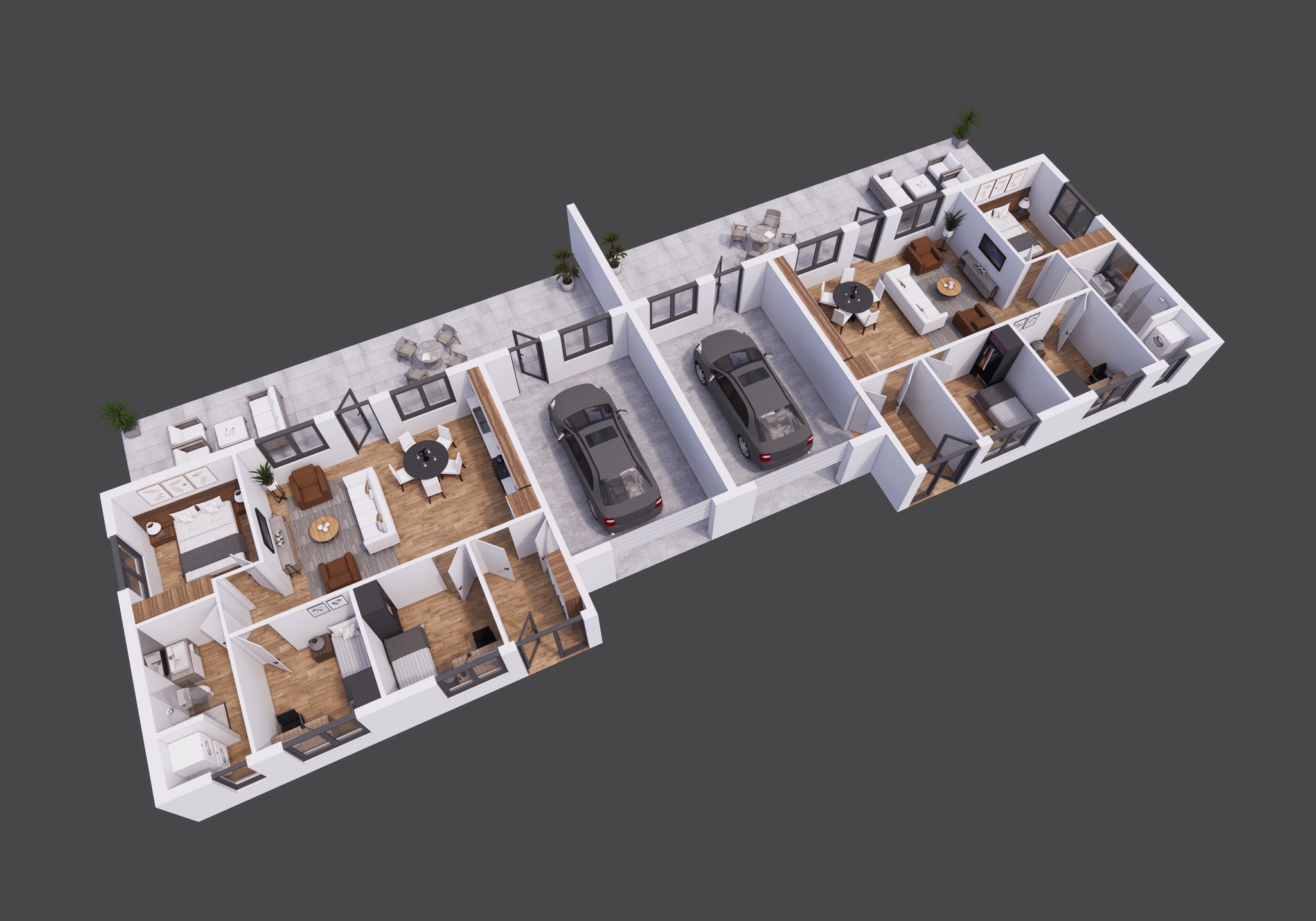 Slík framsetning hentar einstaklega vel í sölu, kynningar og markaðsefni þar sem markmiðið er að gera teikningar lifandi og aðgengilegar. Með 3D gólfplönum verður auðveldara að átta sig á flæði, stærð rýma og heildarskipulagi eignarinnar á einfaldan og sjónrænan hátt.