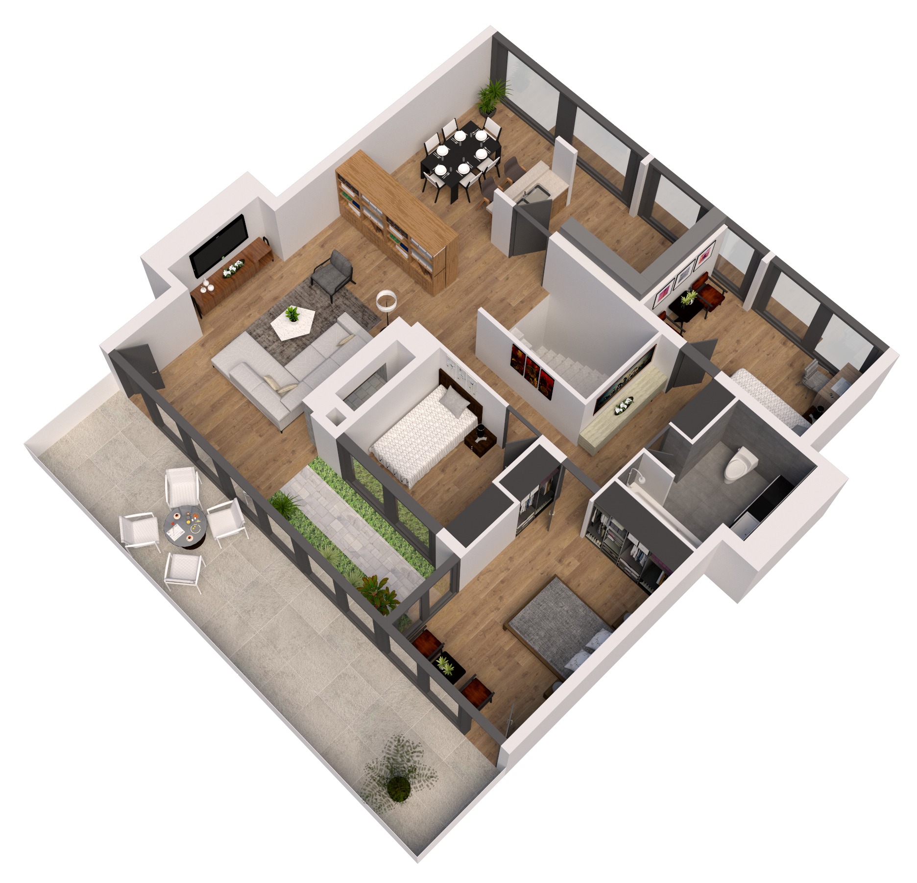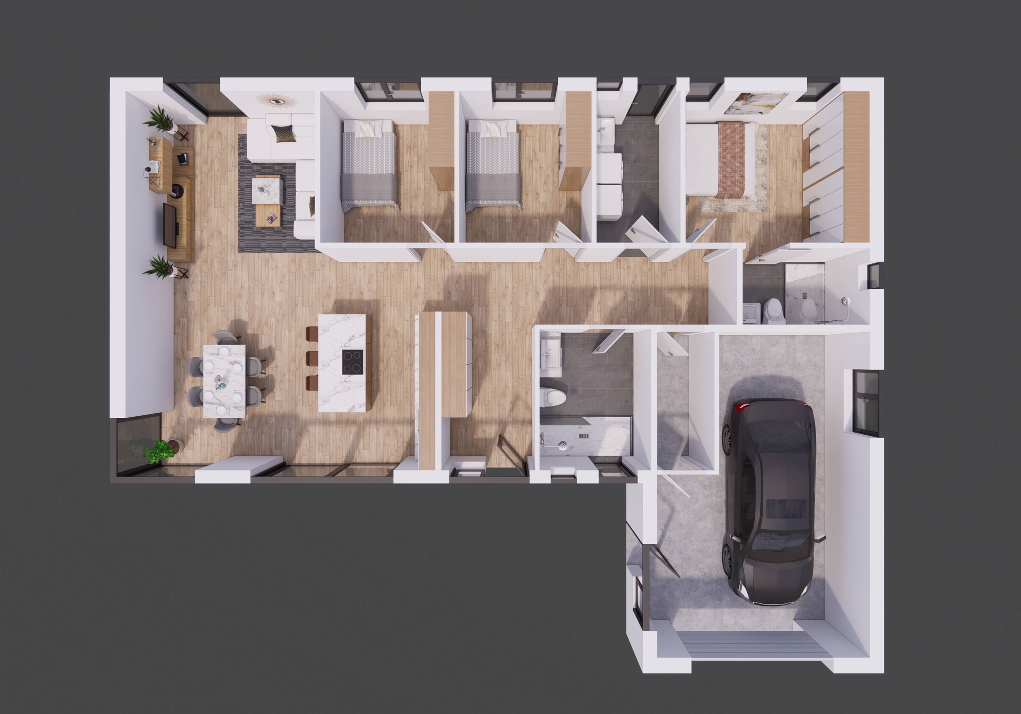 3D gólfplön gera skipulag eignar skýrara, fallegra og auðveldara að skilja. Með þrívíddarframsetningu fær rýmið meiri dýpt og raunverulegri ásýnd, sem hjálpar kaupendum og viðskiptavinum að sjá betur hvernig eignin nýtist.